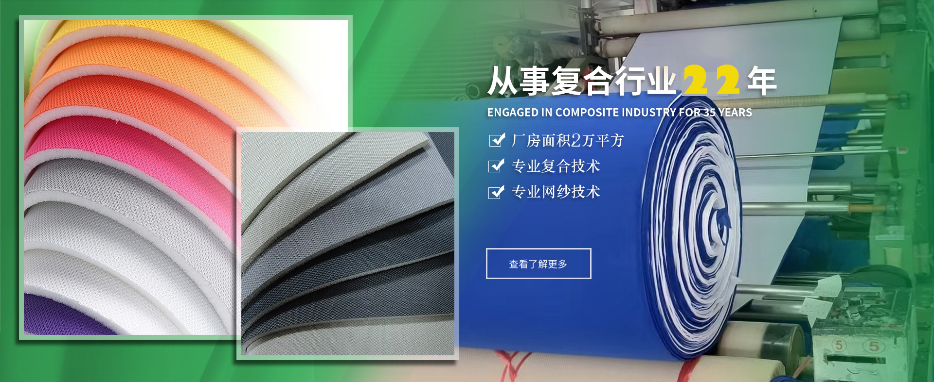 溫州市鑫興隆鞋材復(fù)合有限公司創(chuàng)辦于2002年,座落于溫州市龍灣區(qū)濱海九路18號。分公司溫州金埠鞋業(yè)有限公司座落于溫州市鹿城區(qū)中國鞋都2期27號地塊,生產(chǎn)車間20000平方。第1車間主要生產(chǎn)鞋材復(fù)合布、頭盔內(nèi)襯復(fù)合布、箱包內(nèi)襯復(fù)合布、汽車座椅套復(fù)合布、醫(yī)療復(fù)合布、護腕護膝復(fù)合布、潛水料復(fù)合布,EVA、切片復(fù)合布。第2車間主要生產(chǎn)針織布料、定型布、里子布、網(wǎng)紗、 ...